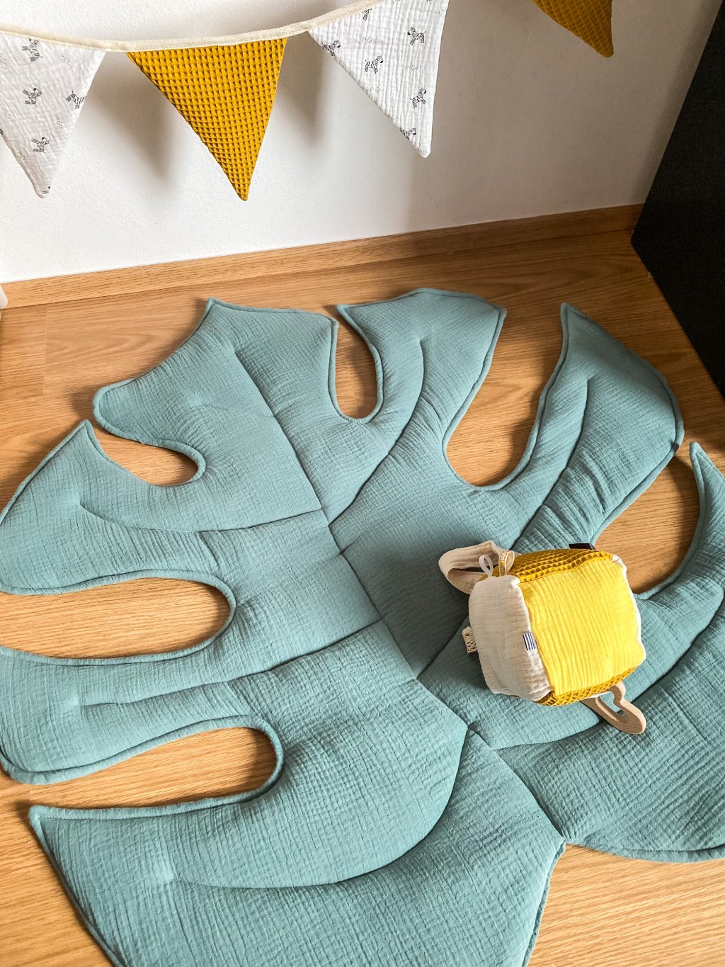 Všude se perfektně hodí luxusní mušelínový list v motivu oblíbené monstery.