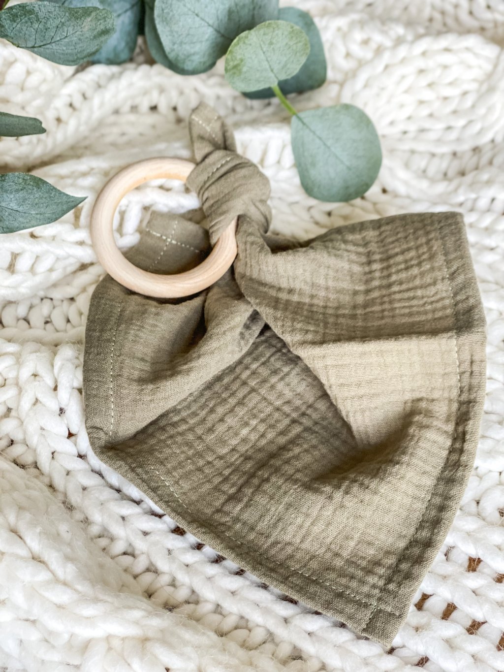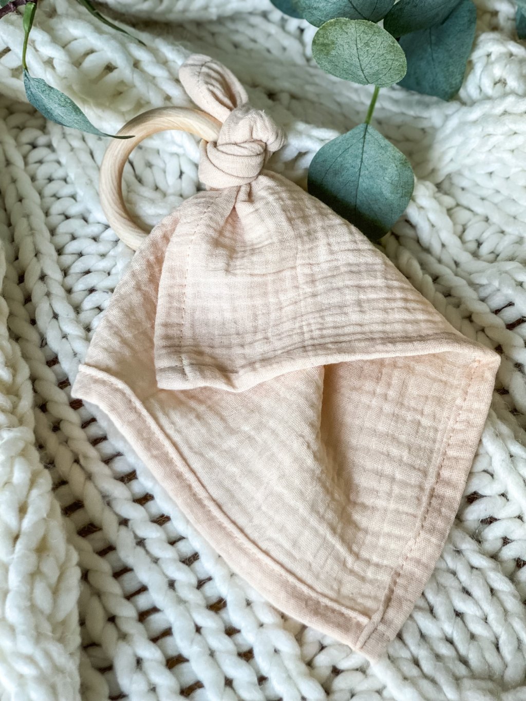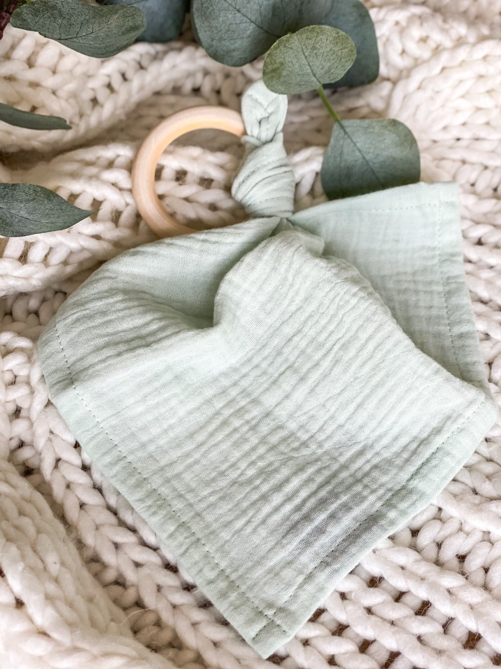 Designový heboučký mušelín je ideální pro jemnou dětskou pokožku. Údržba je velmi jednoduchá, jakmile je Muchlínka ožužlaná a oslintaná, stačí svléknout z kroužku a vyprat.