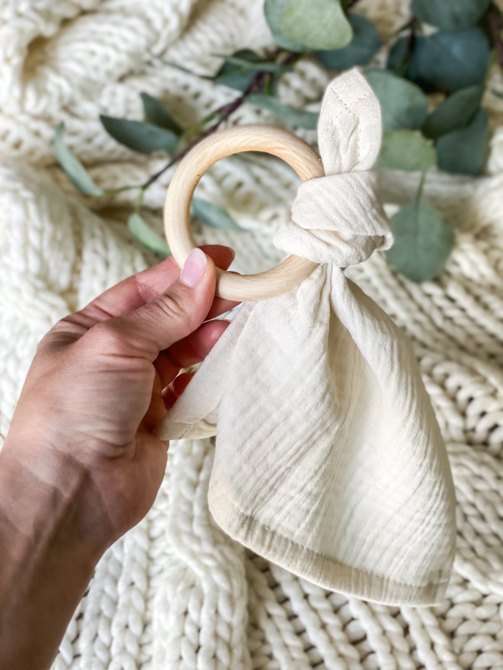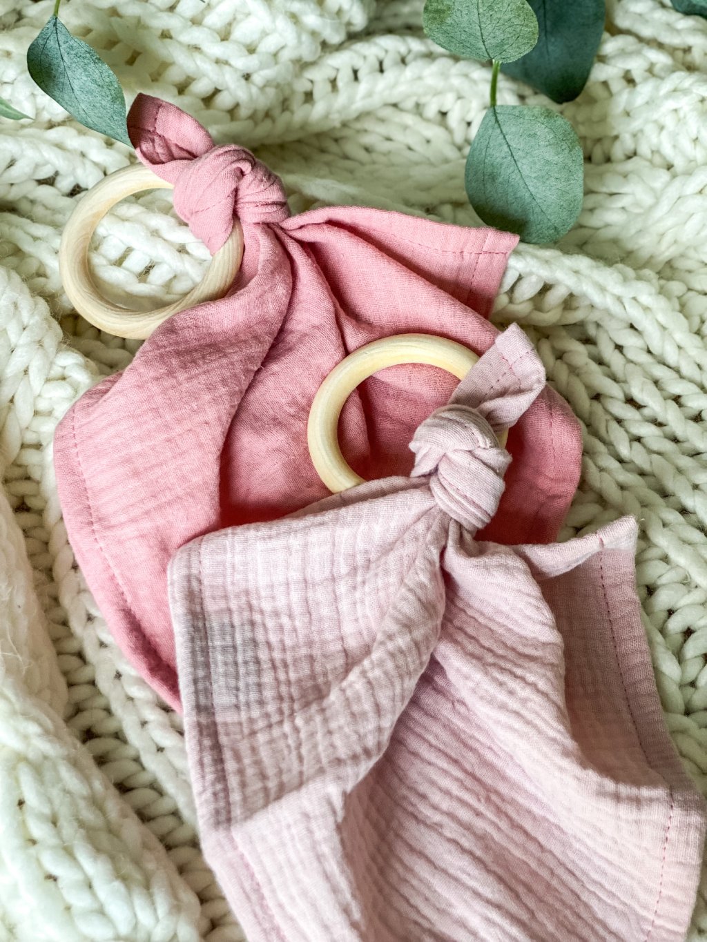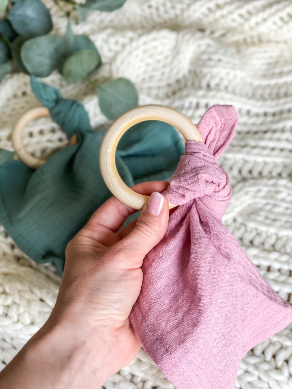 Designový heboučký mušelín je ideální pro jemnou dětskou pokožku. Údržba je velmi jednoduchá, jakmile je Muchlínka ožužlaná a oslintaná, stačí svléknout z kroužku a vyprat.